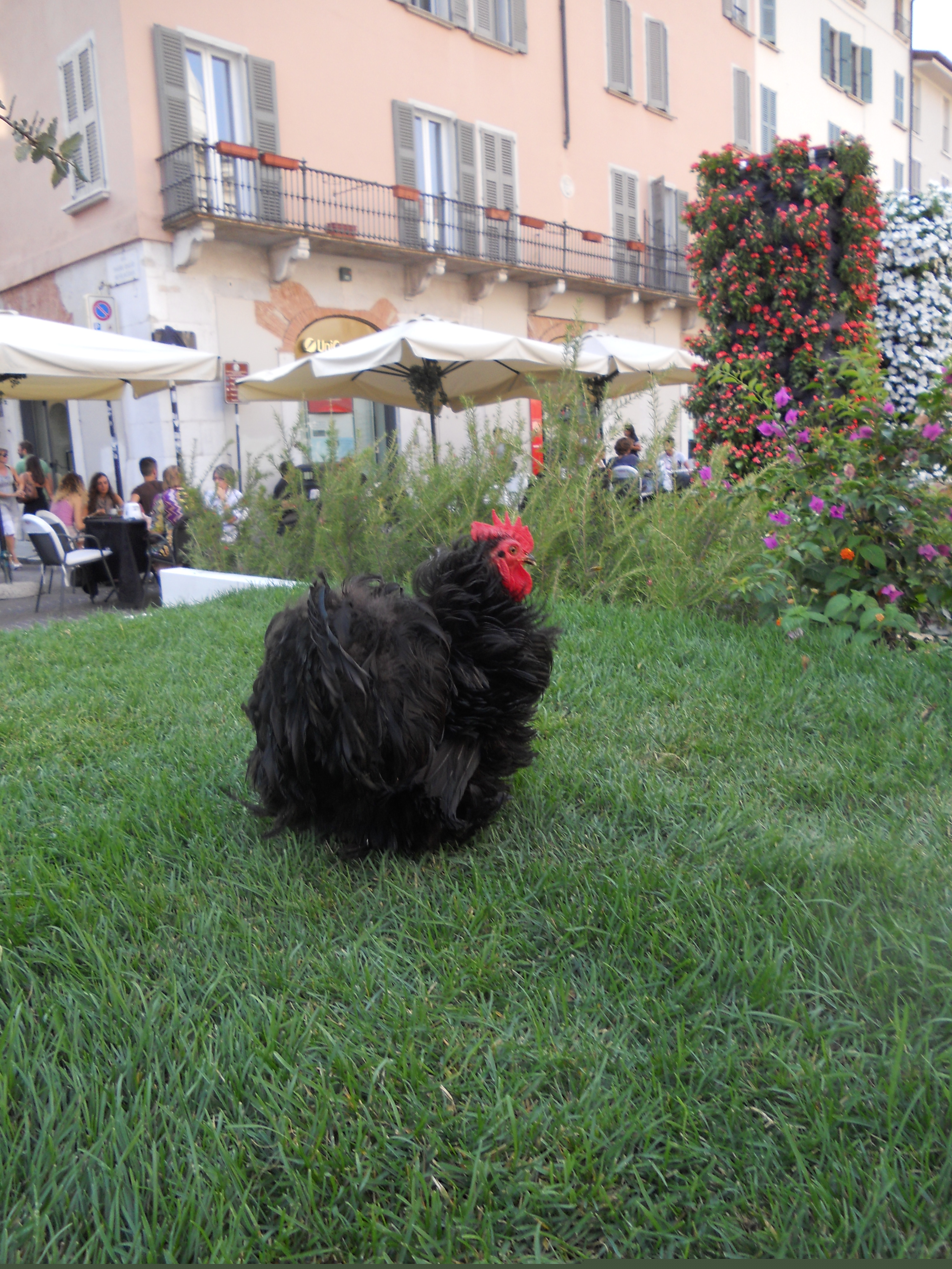 Un gallo in piazza Loggia